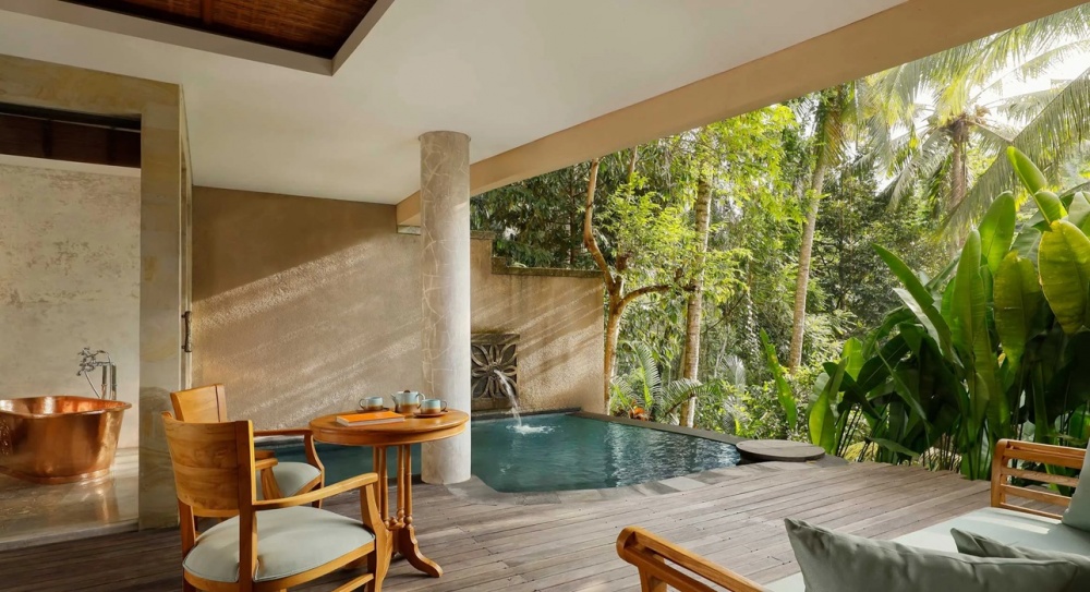 La struttura è pervasa da un'armoniosa fusione del mondo naturale con l'architettura tradizionale balinese; le influenze artistiche degli artigiani locali, passati e presenti, si possono ritrovare nelle camere e nelle aeree comuni, l’artigianalità di un tempo si fond con i materiali locali creando un design contemporaneo.