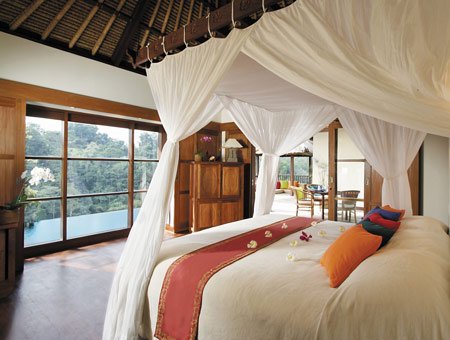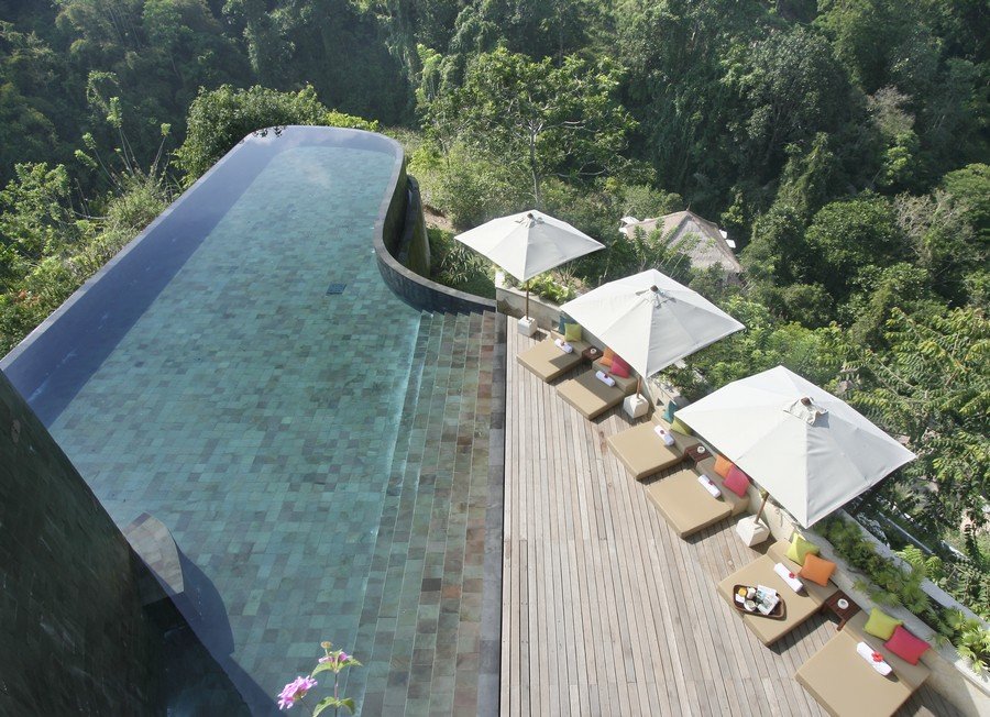 Da Ubud è necessario percorrere strette strade di campagna ed attraversare piccoli villaggi locali per raggiungere questo piccolo paradiso arroccato tra le colline ed immerso in una lussureggiante vegetazione. Tutte le ville sono dotate di piccola piscina privata ed offrono una vista mozzafiato su tutta la vallata. Dalla piscina principale e dal ristorante è possibile ammirare il tempio locale situato esattamente dalla parte opposta della vallata. Ottima la Spa ed il servizio in generale.