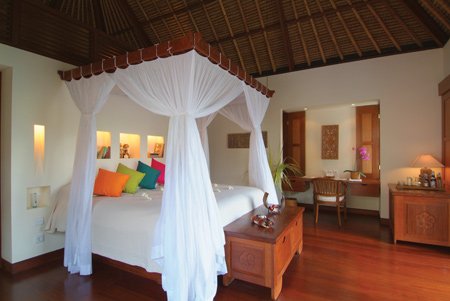 Magicamente inserite in un contesto di intatta e naturale bellezza. Ciascuna Villa e Suite del Resort è costruita interamente con legni pregiati e corredi di lusso Balinesi. Dispongono tutte di meravigliosa vista sul panorama circostante. Si differenziano in 4 tipologie differenti, Panoramic Deluxe Pool Villa, Panoramic Pool Villa Suite, Riverside Deluxe Pool Villa, Duplex Family Pool Villa.