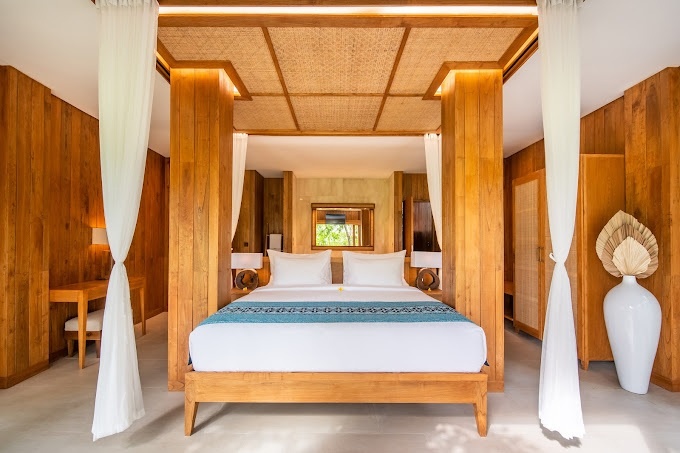 Gli interni delle 76 suite e ville sono un mix di arredi locali e contemporanei, le pareti spesso presentano antichi poemi epici sanscriti del Ramayana. Questi spazi pieni di luce integrano perfettamente l'esterno e l'interno, con gli interni in legno che si fondono con la rigogliosa vegetazione esterna. Per coloro che cercano ulteriore isolamento, molte delle sistemazioni degli ospiti dispongono di piscine a sfioro private e verande da sogno.