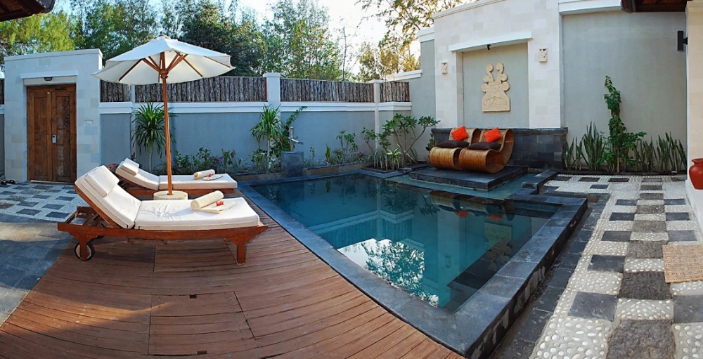 Aria condizionata potente (fondamentale a Gili), bagni spaziosi all'aperto e zone living ampie e ombreggiate.