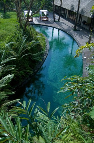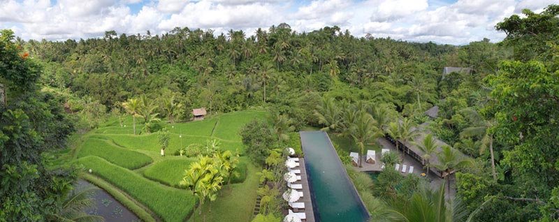 Situato sulle dolci colline che circondano Ubud ed affacciato sulla vallata del fiume Campuhan con bella vista sul fiume stesso e sulle risaie, è allo stesso tempi situato a breve distanza dal centro città.