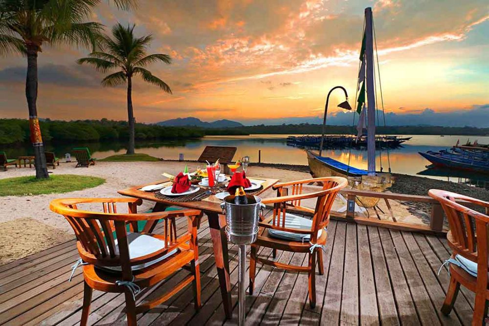 Ristorante principale Sunset Beach Restaurant & Bar spesso rifornito da prodotti che arrivano direttamente dall'orto organico del Resort che occupa ben 2 acri.