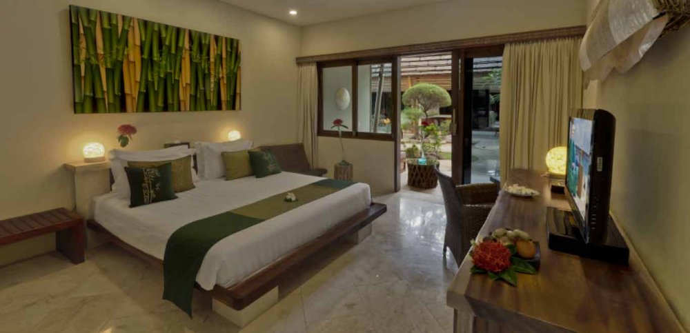 - Lumbung Beach Cottages: 61 mq 1 Letto Matrimoniale King Size Struttura dal design tradizionale Lumbung (capanno in stile risaia), che aggiunge un tocco rustico e autentico. Molto spaziosa e adatta per 4 adulti. Grande bagno..