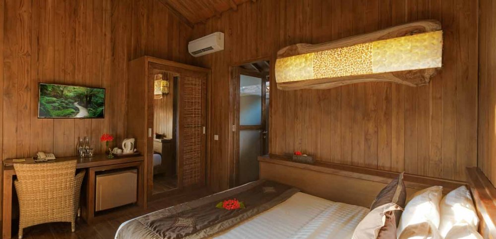 - Teak Cottages: 27 mq 1 Letto Matrimoniale King Size La sistemazione più compatta e tradizionale. Caratterizzata da un design in legno Teak. Offre vista giardino. Include tende oscuranti e accappatoi.