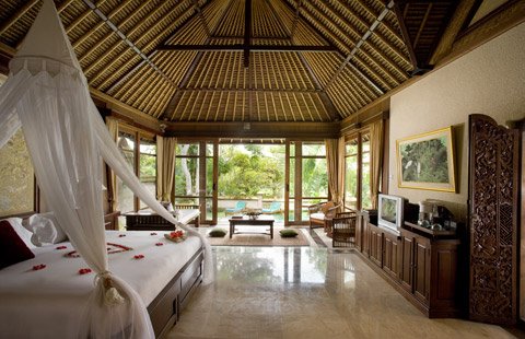 Dispone di appena 24 ville private, immerse nella verdeggiante natura che caratterizza l’entroterra dell’isola di Bali. Ampia piscina esterna, una rinomata Spa, “Pita Maha”, la quale vanta sale esterne, interne e vasca Jacuzzi. Dispongono di un lungo elenco di massaggi e trattamenti per il corpo della centenaria tradizione Indonesiana.