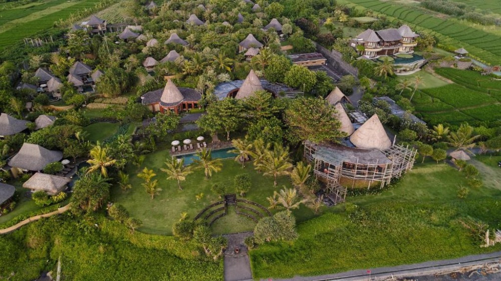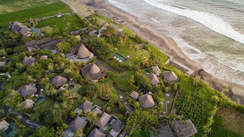 L'hotel si trova sulla costa occidentale di Bali, nel distretto di Tabanan, affacciato direttamente sulla spettacolare spiaggia di sabbia nera di Yeh Gangga.