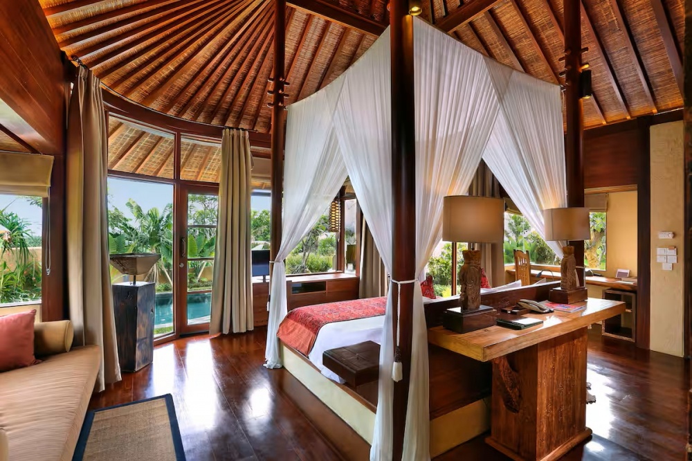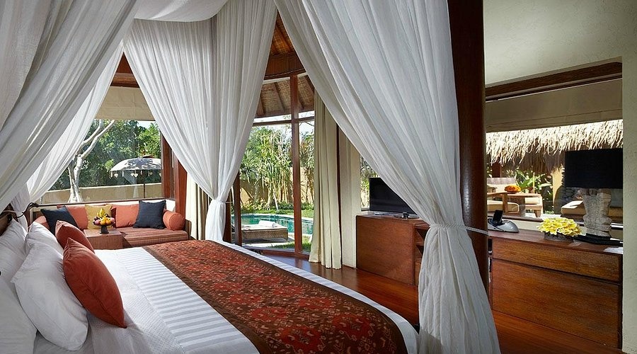 Le camere sono molto ampie e i bagni, spesso semi-aperti in stile balinese, offrono docce a pioggia e vasche scultoree.